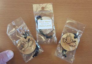 Aus Olivenholz handgemacht in Bethlehem. Die Friedenstaube eignet sich ideal für den Rucksack, als Schlüsselanhänger, für den Innenspiegel im Auto, für den Christbaum oder als besonderes Geschenk.